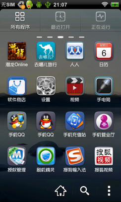 原生系统 通过对比三个系统桌面不难发现,通过安装第三方软件之后系统界面发生了比较明显的变化,这一定程度上也有助于提升手机的流畅度。 二、整理释放手机内存 比较有效的提升手机流畅度的是处理器和内存,接下来要说的是通过关闭后台进程整理手机内存的方式,这也能在很大程度上提升手机的流畅度,因为手机内存的大小也直接影响到程序的运行速度。Android手机和iPhone有一个明显区别就是支持多任务,但是多任务也有一个弊端那就是程序退出后,相关进程还在后台进行运行,久而久之后台的进程越多就会把手机的内存占据慢,系统也随之会变慢,所以我们在使用中经常清理不需要的后台程序释放手机内存,也是提升手机流畅度的一个常用方法。 手机内存的方法也比较简单,一种是通过系统内置的应用程序管理进行清理这种方式比较慢,另外一种是通过第三方软件进行批量处理,下面我们就来为大家介绍这两种方式。
