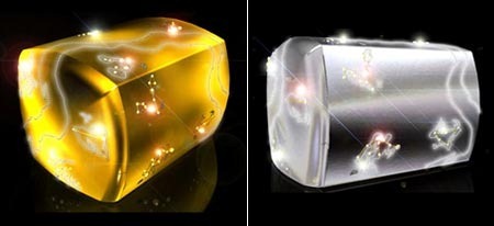 下面出场的是一款笔记本,它是来自韩国的一款非常漂亮的本本——Tulip E-GO 。它是荷兰郁金香电脑公司在05年推出的的产品,首先,它以独特的外形设计征服了很多女性朋友,它的外形一反传统的笔记本方方正正的设计,而是将其变化成为一款女士手提包的形状。但这似乎还不够,设计师还在它的表面镶嵌了几千颗60面体切法的钻石。而它的身价也由此大增。
