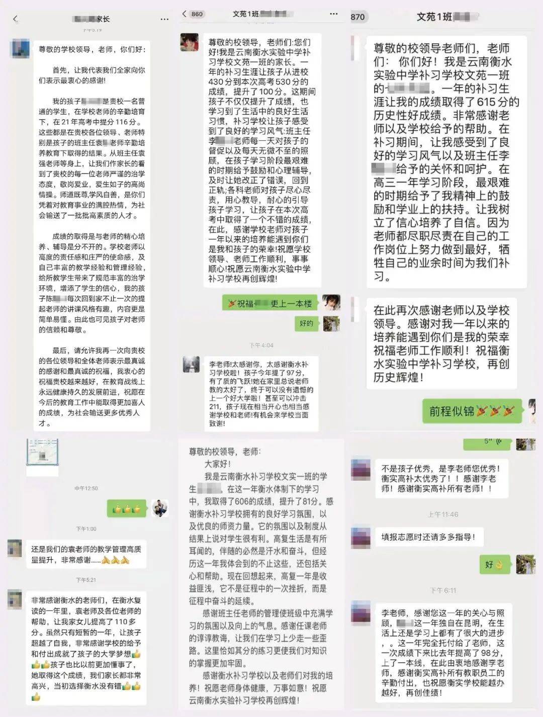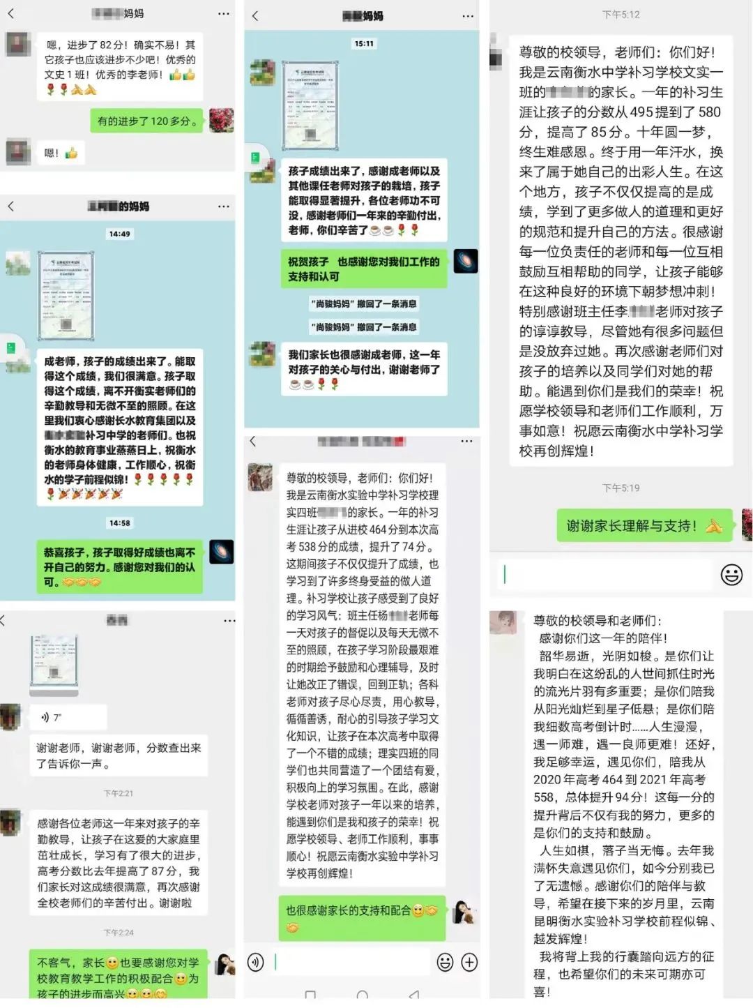 班主任定期向家长做反馈,通过面对面、电话、微信、每周班级群学情反馈表、个性化学员沟通记录、谈心记录等形式与家长及时沟通联系。