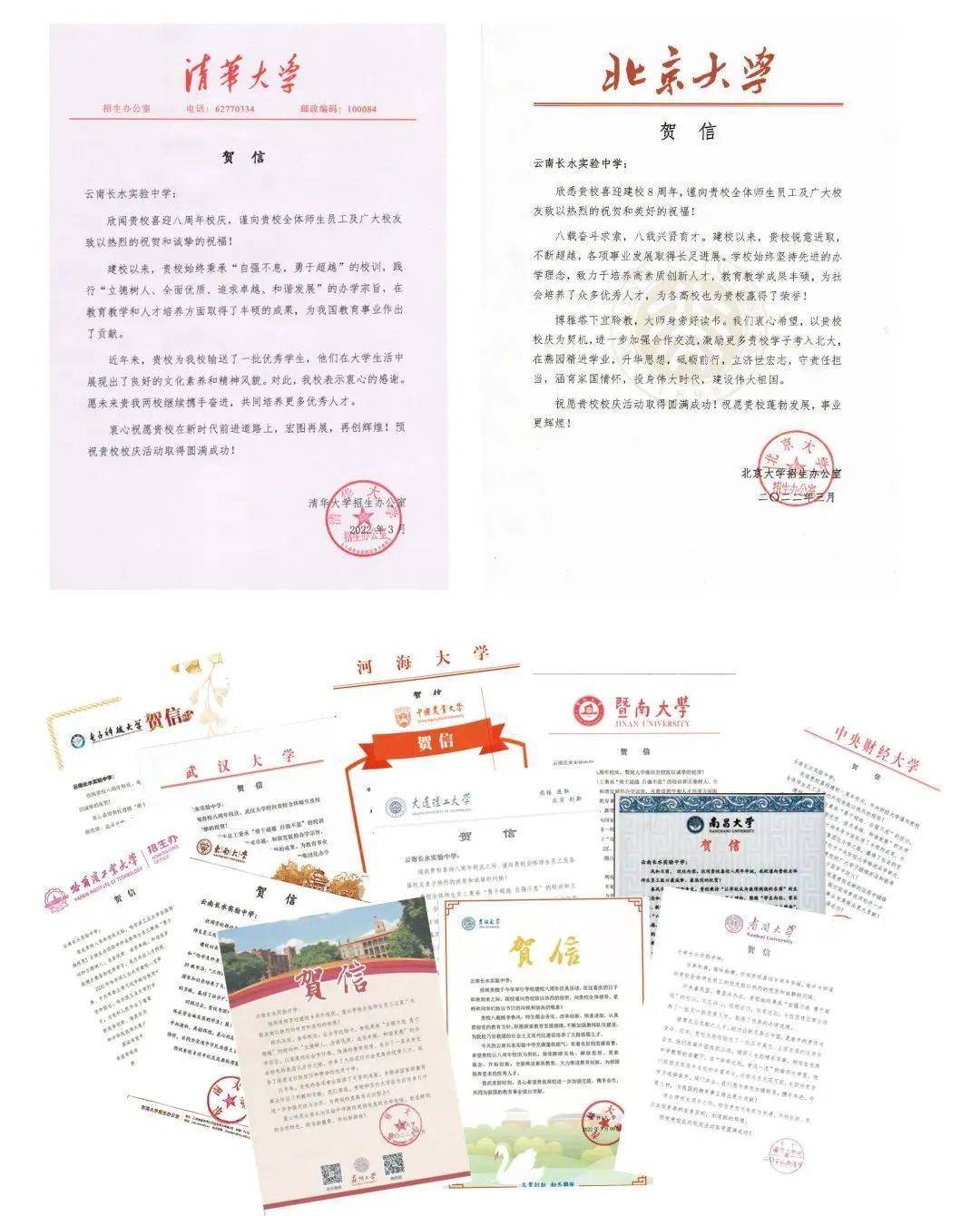 01国内名校发来喜报与贺信