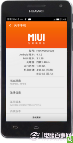 自动重启后你可以打开手机“设置”选项里的“关于手机”按钮,查看手机现在的系统。本荣耀2四核爱享版刷机教程以MIUI2.3.1为例,下面给华为U9508机友们展示下新系统。