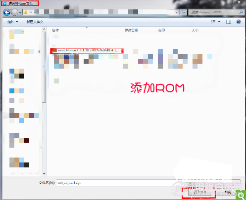 刷机步骤二:导入Rom 点击刷机软件主页面的“浏览”,找到Rom包,选择刷入华为荣耀2四核的新系统然后点击“打开”。Rom包请在专业网站下载,一定要选择适合给华为荣耀2刷机的Rom。这款刷机软件能智能识别Rom包,所有Rom包通刷,不需要给Rom包解压。