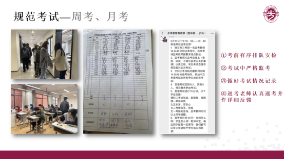 严格且***地针对每一位学生个性化的学业监督。月月考,周周清,日日结。以每日、每周、每月过关的方式***把控学生对知识点和考点的掌握。***到学生个人,如果考点遗漏、不过关就继续练到过关为止。必须保证人人通关,学生的通关直接和教师的考核挂钩。