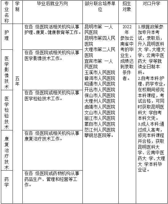 1.填报志愿:按规定在《云南省-毕业升学志愿表》五年制和中职批次,较好志愿分别填报昆明卫 生职业学校(五年制代码:530726,普通中专代码:530405)。